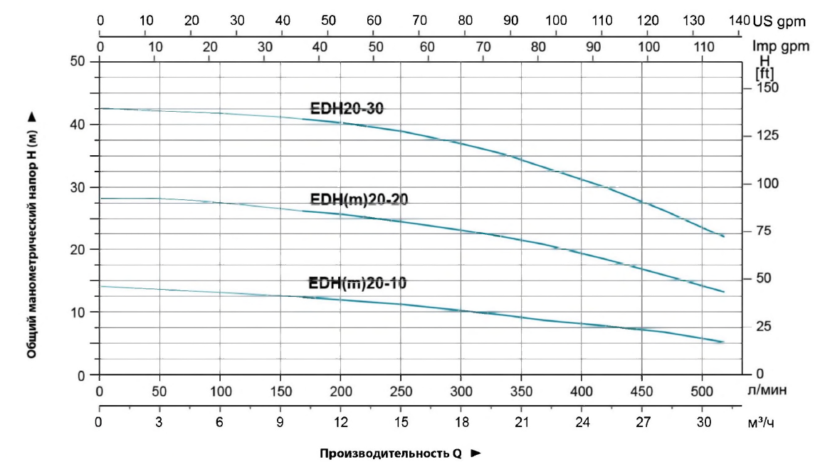 • Номинальный напор 9,9 метров водяного столба.